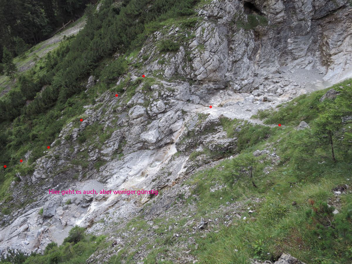 Wir sind beim Aufstieg eine Etage zu tief gequert, was auch geht, aber einfacher geht es weiter oben.