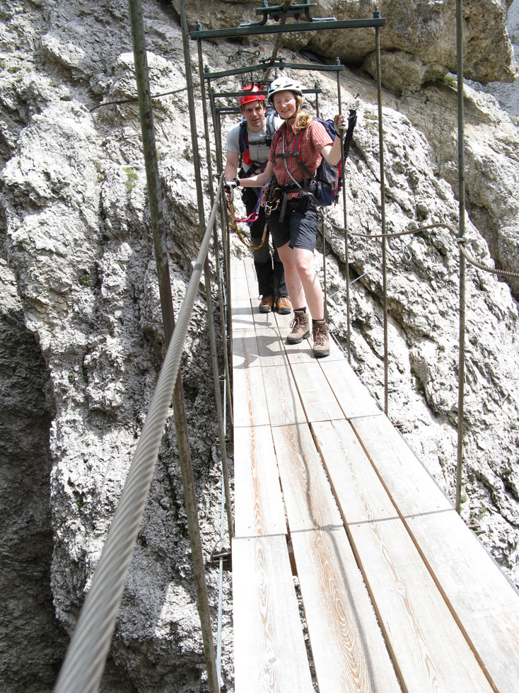 Den Spalt zwischen dem Exner Turm und dem Hauptmassiv überspannt eine schaukelige Hängebrücke