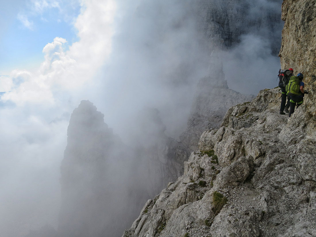 Inzwischen war der Brenta-Nebel doch noch aufgezogen und riss immer andere Löcher auf zum Durchsehen.