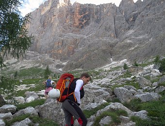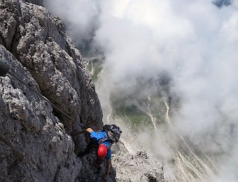 Großer Kletterspaß. Die Steinewerfer sind inzwischen in der steilsten und spektakulärsten Stelle des Steigs unterwegs.