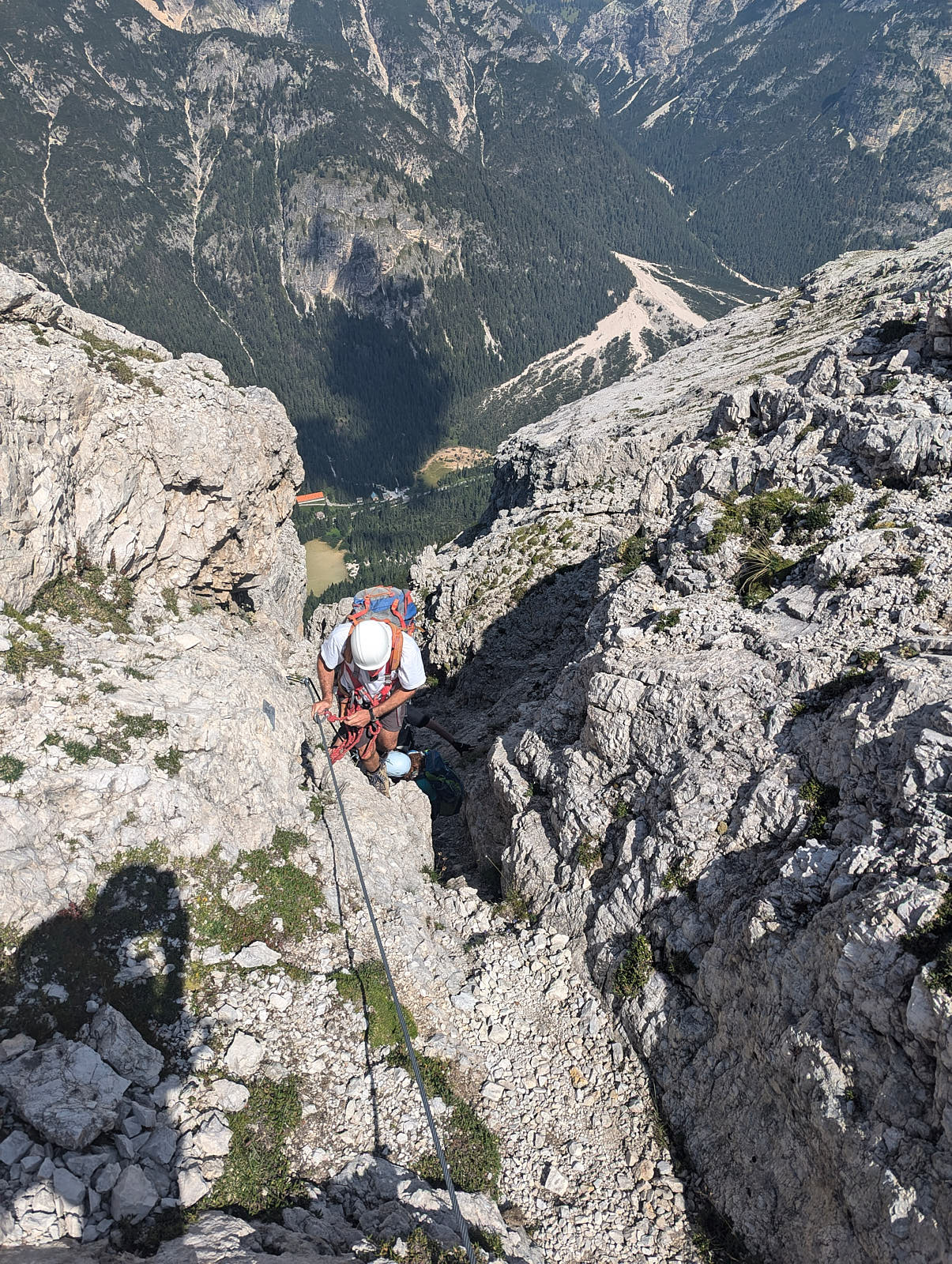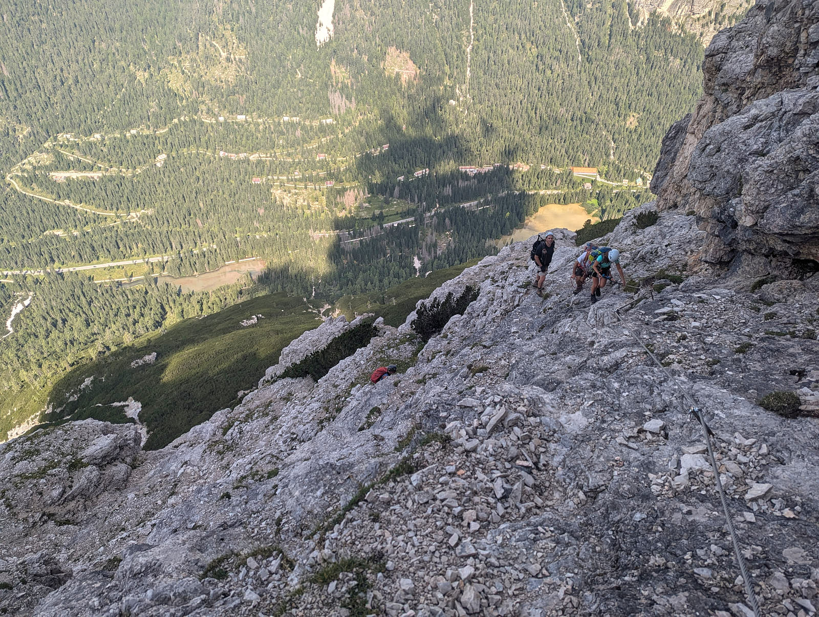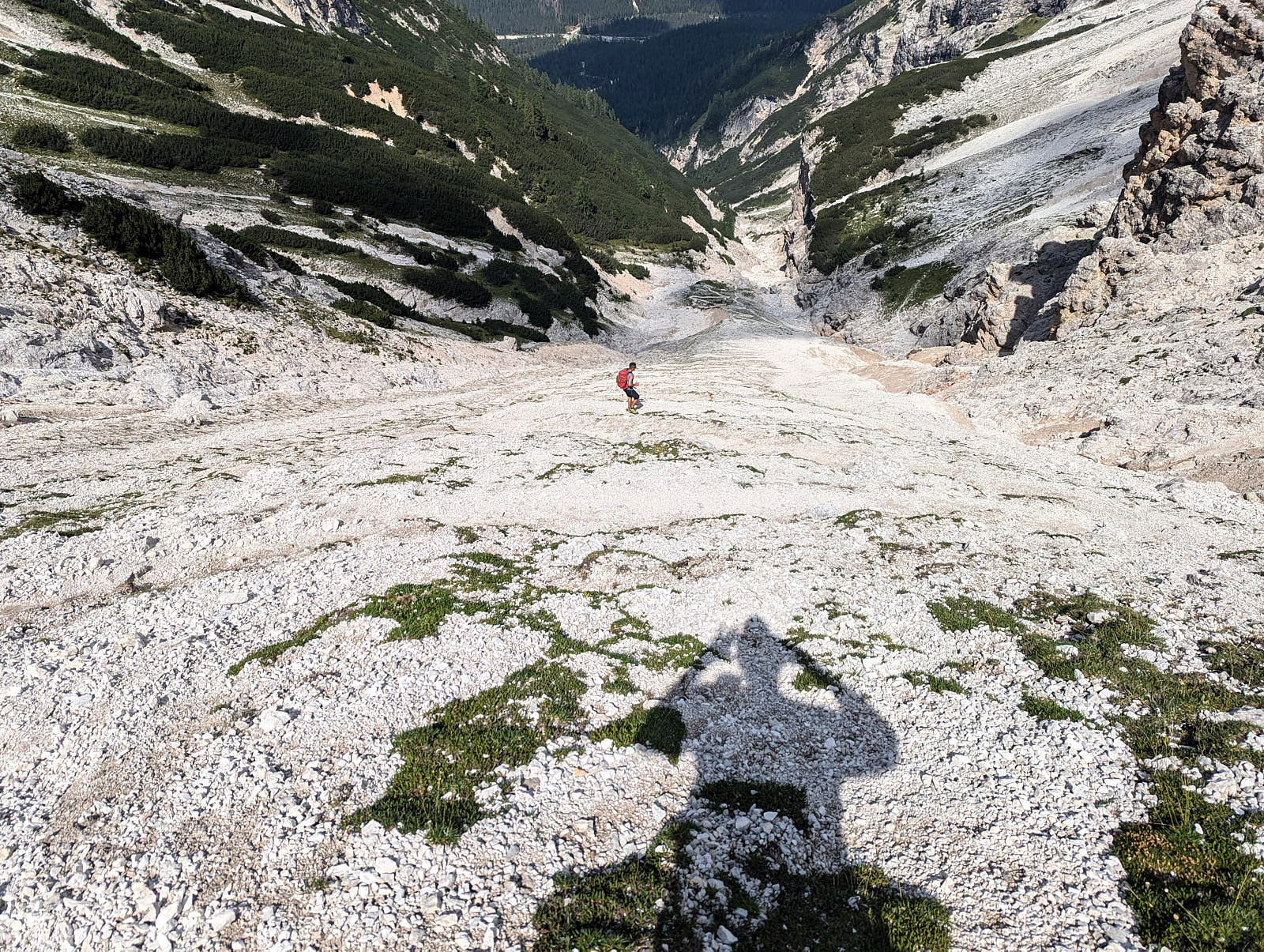 An der Forcella Negra vorbei, die im oberen Teil mit einem verlockenden Pfad zum Abstieg verführt. Der endet aber unten komplett in der ausgewaschenen Scheiße.…