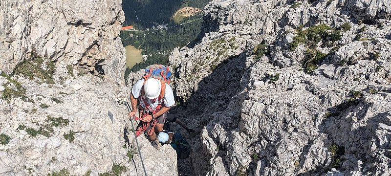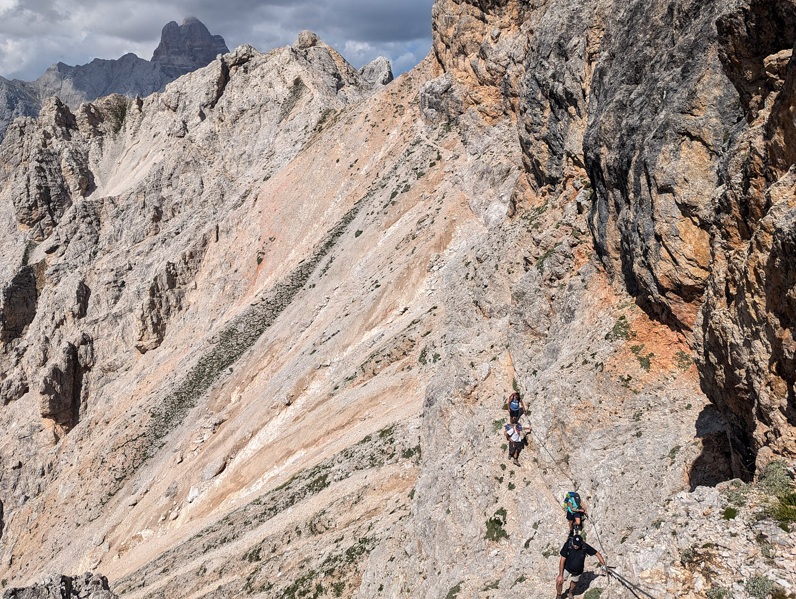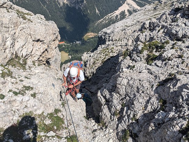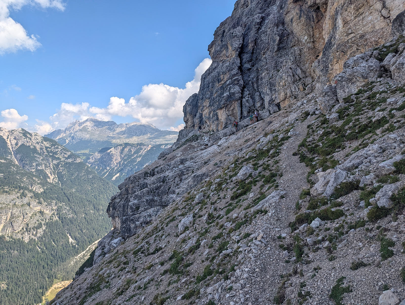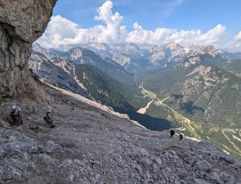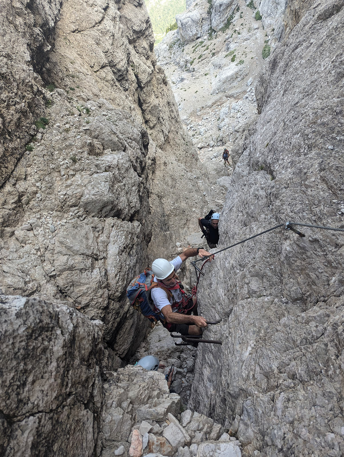 An der Forcella Negra vorbei, die im oberen Teil mit einem verlockenden Pfad zum Abstieg verführt. Der endet aber unten komplett in der ausgewaschenen Scheiße.…