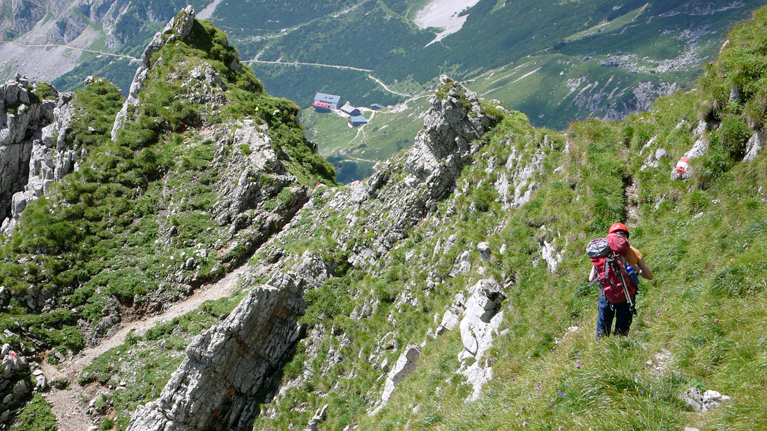 Ein paar Meter noch zum Einstieg. Unten die Gruttenhütte.