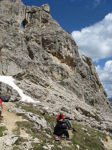 Der Klettersteig endet auf dem Weg zur Rotwand, der am Fensterlturm vorbeiführt.