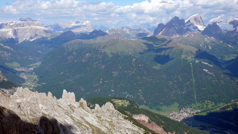 Von links: Sella mit Piz Boe, Tofana, Marmolada.