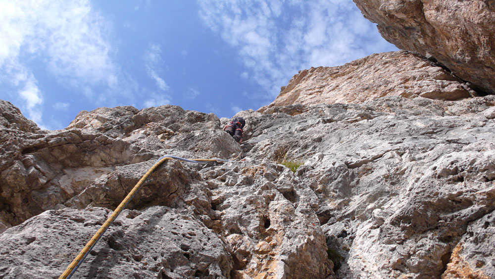 Erste SL. Der Einstieg ist dermaßen abgeschmiert, dass sogar Erich nach einem Schritt hinauf sich unversehens wieder zurück auf dem Boden fand.